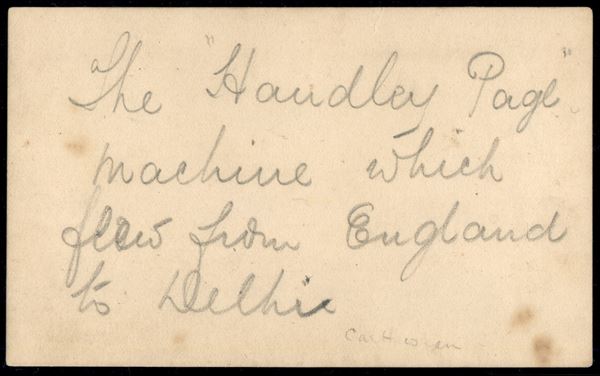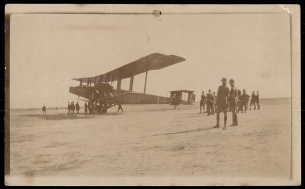 1916/1922 - Fotografia d'epoca del Velivolo Handley Page Type/O con militari - scritta al retro: The Handley Page machine which flew from England to ......