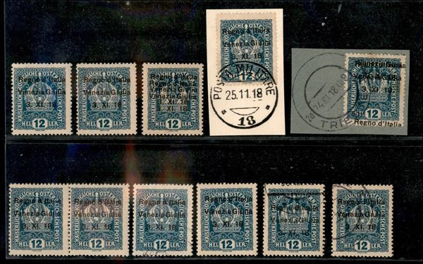 1918 - 12 heller (5) - piccolo insieme di 6 esemplari nuovi e 4 esemplari usati con diverse varietà di soprastampa - gomma originale/usato