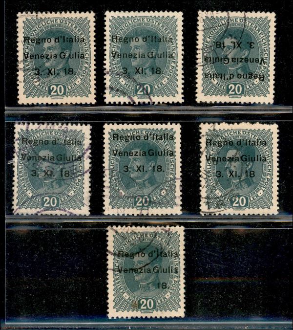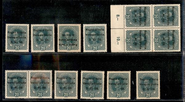 1918 - 20 heller (7) - piccolo insieme di 14 esemplari nuovi e 7 esemplari usati con diverse varietà di soprastampa - gomma integra/originale/usato