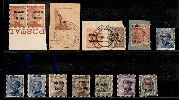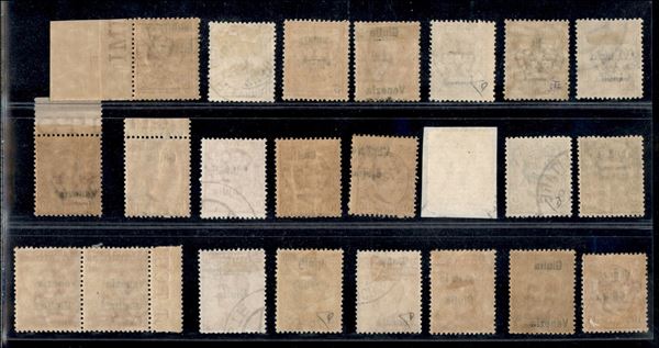 1918/1919 - Insieme di valori nuovi e usati dell'emissione (19/29) con diverse varietà di soprastampa e errori di composizione - gomma integra/originale/usato