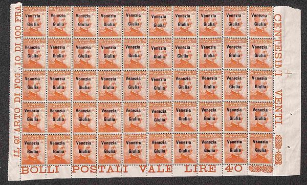 1918/1919 - Metà inferiore del foglio del 20 cent (23) completo di margini - gomma integra