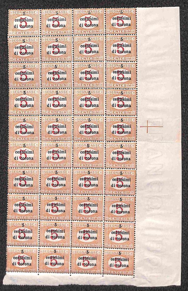 1919 - Blocco di 40 con margini angolari del 5 cent su 5 cent (1) - gomma integra