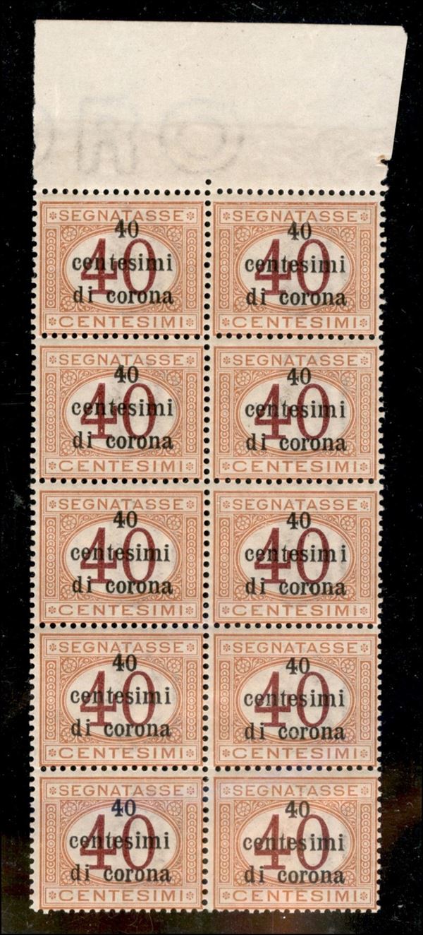 1919 - Blocco di dieci del 40 cent su 40 cent (5) - bordo foglio - gomma integra