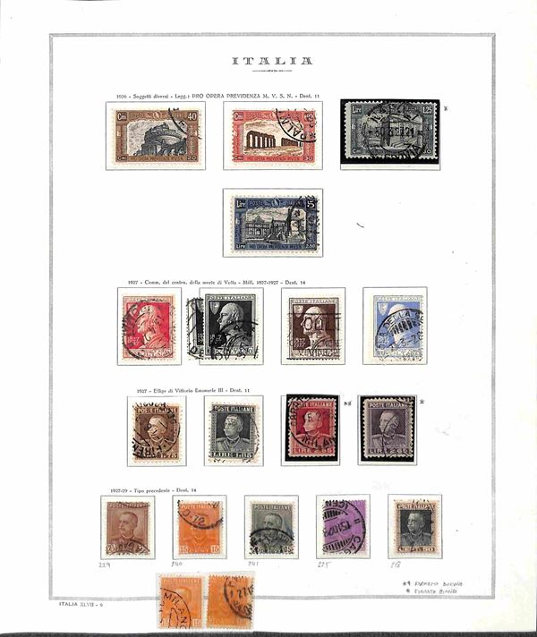 1925/1929 - Tre pagine d'album con valori usati del periodo (183/219 + 224/225) - diverse serie complete con alti valori firmati