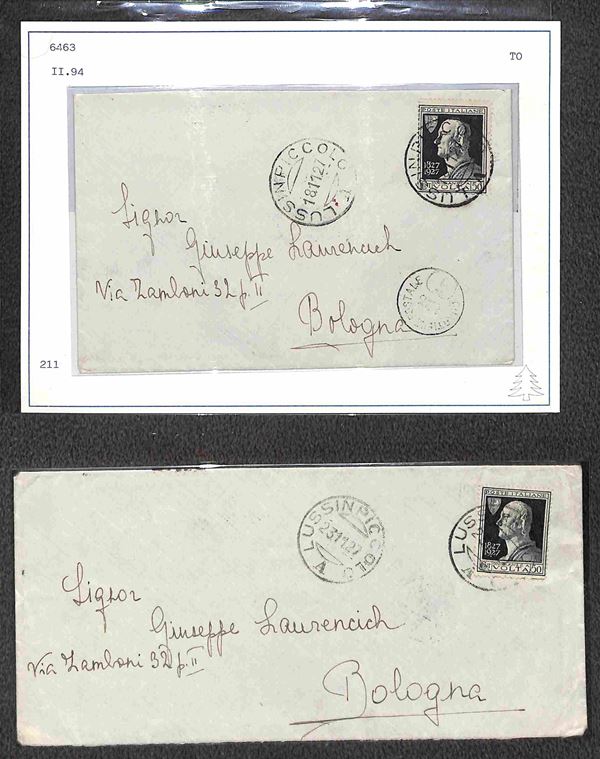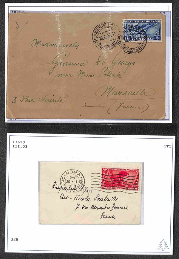 1927/1938 - Commemorativi - Piccolo insieme di 9 oggetti postali con diverse affrancature e destinazioni del periodo - ex coll. Provera