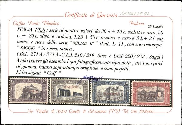 1928 - Milizia II Saggi (220/223) - serie completa - nuovi senza gomma - cert. Caffaz