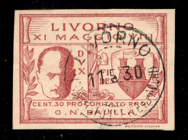 1930 - 30 cent (1a) non dentellato - usato su frammento - Raybaudi (1.800)