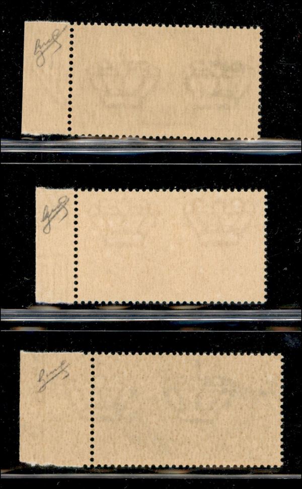 1941 - Non Emessi (457A/457C) - serie completa - bordo foglio con parziale numero - gomma integra - Biondi - molto bella e fresca