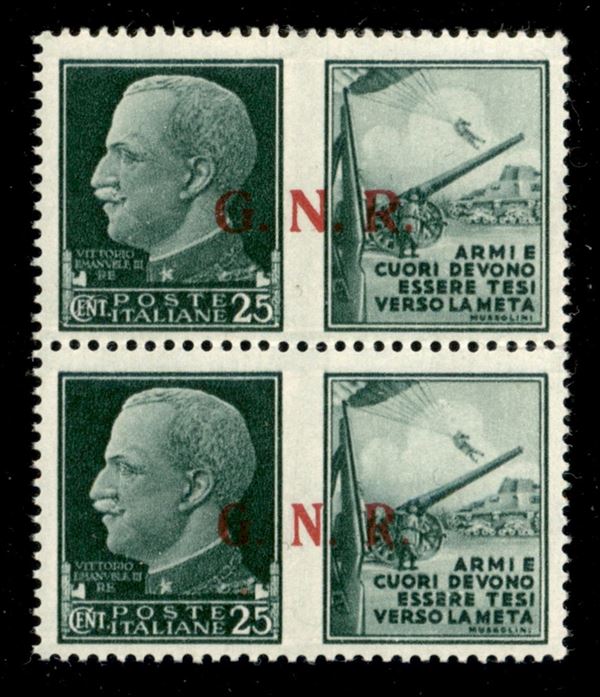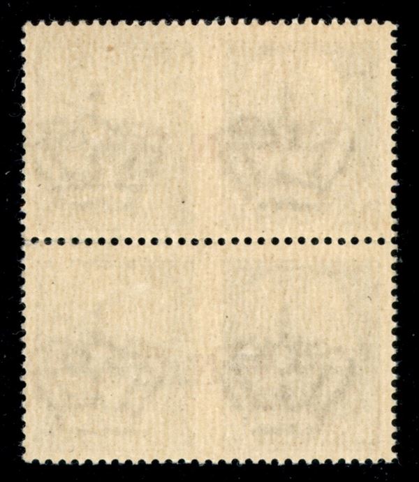 1943 - 25 cent Esercito (14/I + 14/II) - quartina con i due tipi di soprastampe - gomma integra (450+)