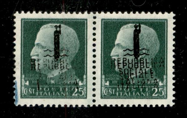 1944 - Coppia del 25 cent (491 varietà) con doppia soprastampa incompleta/evanescente - non catalogato - gomma integra