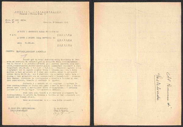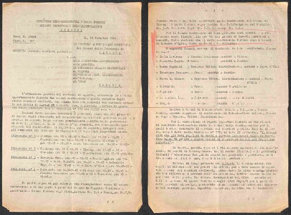 1944 - Cremona/Casatelverde - 24 novembre/8 gennaio - 3 circolari relative al servizio con itinerari e oriari