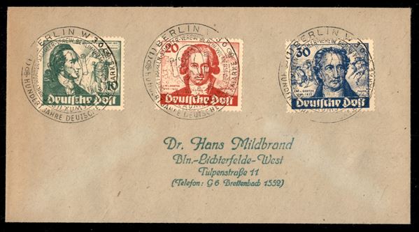1949 - Goethe (61/63) - serie completa su bustina -Berlino 1.11.49