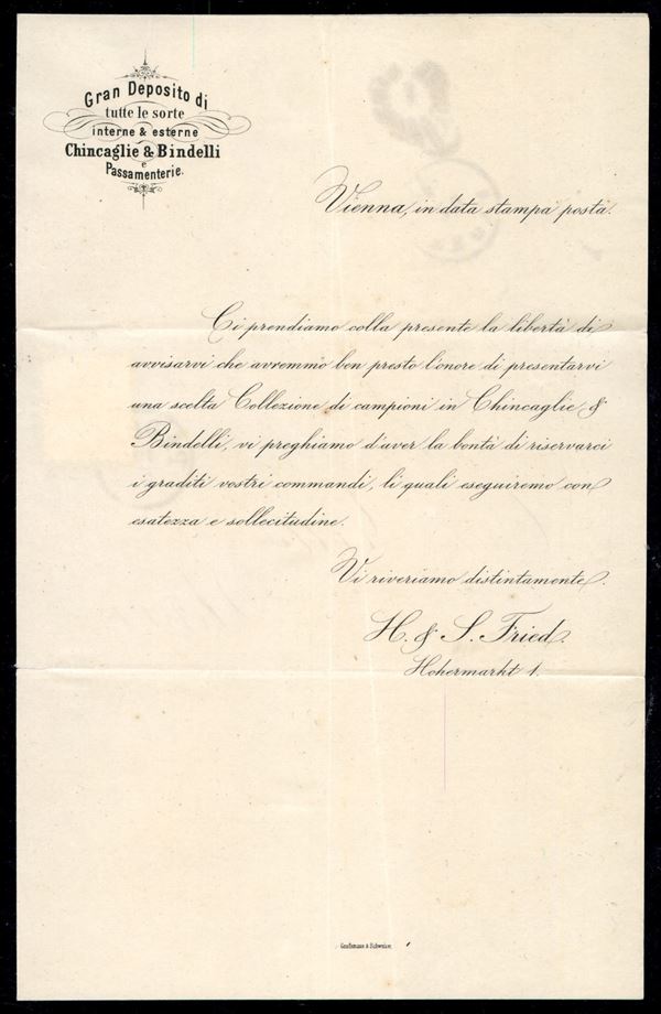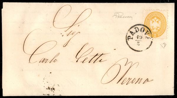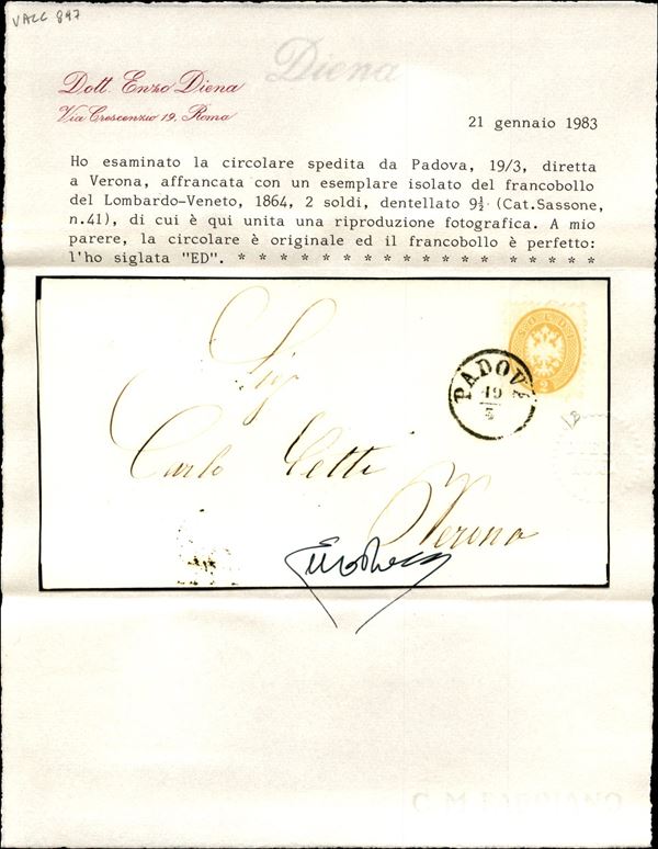 2 soldi (41) isolato su circolare stampata a Vienna e affidata alle poste a Padova per Verona (probabile Forwarder) - molto bella - P. Vaccari + cert. En. Diena