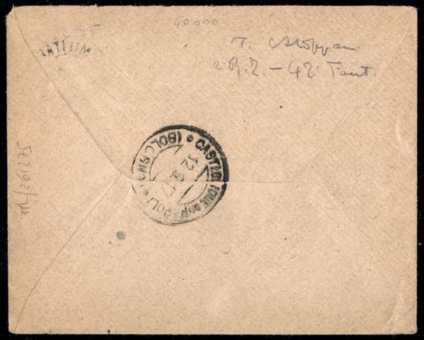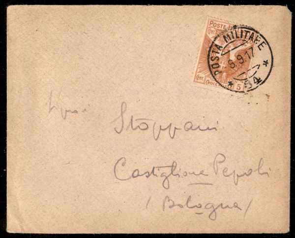 20 cent + 5 arancio Croce Rossa (105) annullato Posta Militare 84 8.9.17 su busta per Bologna