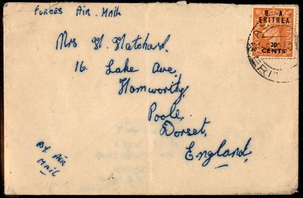 20 cent su 2 pence (16) isolato su busta da Asmara del 8.10.50 (1750)