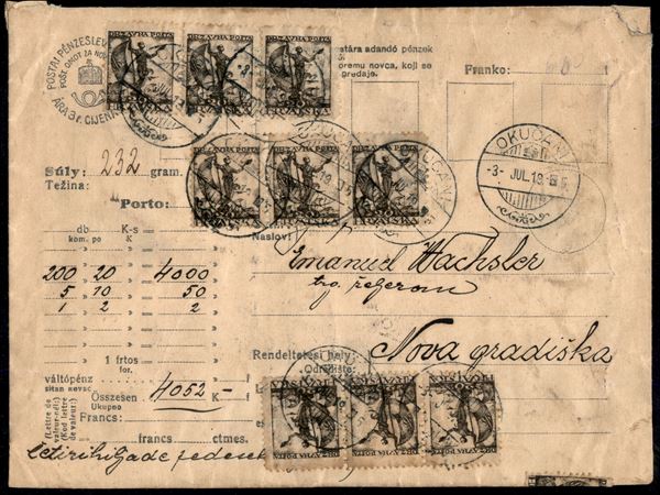 20 filler (92) - trentatre pezzi fronte retro su busta da Okucani a Nova Gradiska del 3.7.19 - alcuni pezzi difettosi