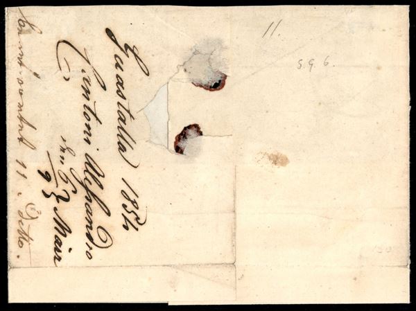 40 cent celeste (5) isolato su gran parte di assicurata (fronte + parte del retro) da Guastalla a Villach del 6.3.1854 - tre grandi margini e perfetto in alto a sinistra - raro insieme - Em. Diena
