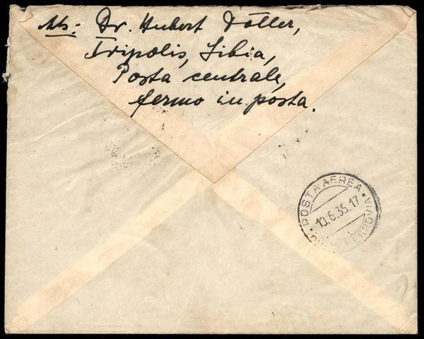 60 cent (10 - aerea) + 1,25 lire (105 - Libia) - aerogramma da Tripoli a Lubecca del 9.6.35 (288+)