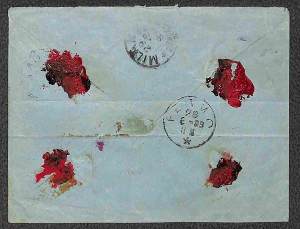 60 cent Umberto (47) + 5 cent (59) su raccomandata da Falerone a Milano del 27.3.93