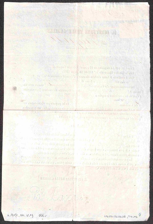 Atto amministrativo recante striscia di cinque del 20 cent pił coppia del 5 cent (L26 + T16) annullati a penna a Napoli 28.2.69 - raro insieme - ex coll. Provera - ED