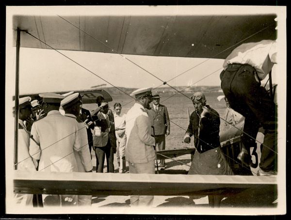 Balbo + Lindberg - fotografia originale di Charles Lindberg accolto all'arrivo in Libia da Italo Balbo