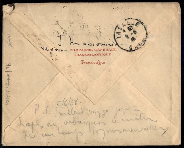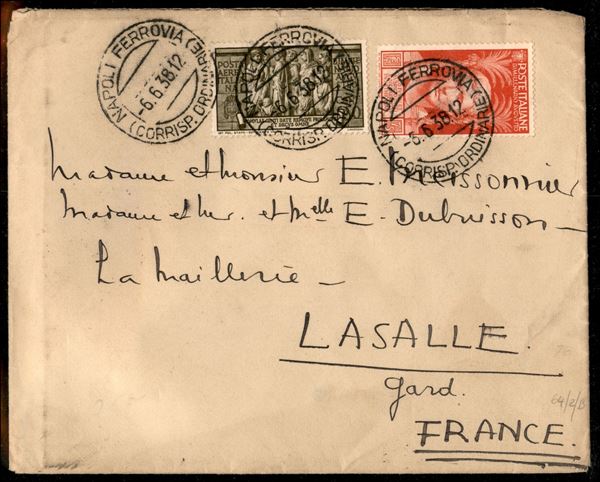 Bimillenario Augusteo - 75 cent carminio (422) + 50 cent bruno oliva Aerea (107) su lettera per la Francia da Napoli 6.6.38 a Lasalle