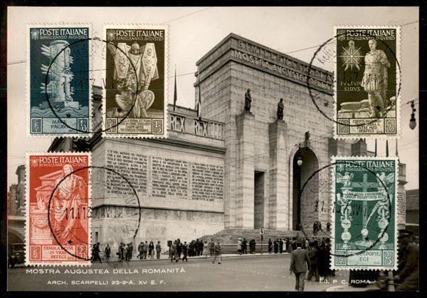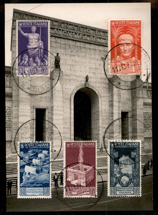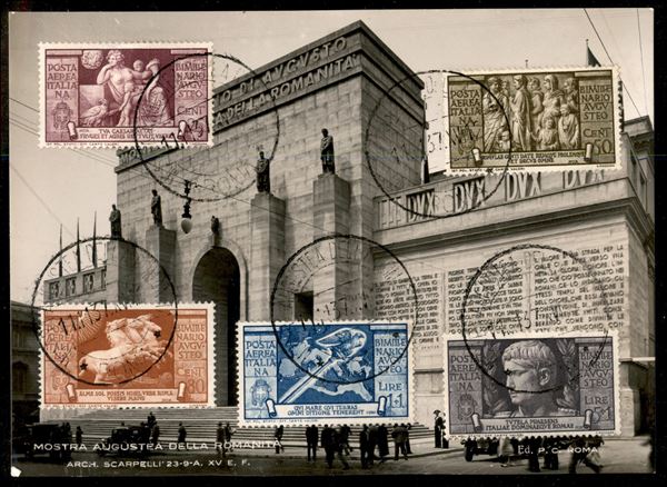 Bimillenario Augusteo serie completa pił Aerea (416/25 + A106/10) su tre cartoline con l'annullo della mostra - insieme splendido