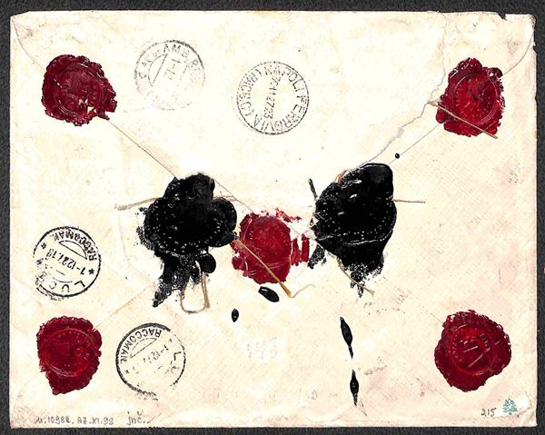 Busta assicurata da Napoli 30.11.27 affrancata con tre esemplari 1,85 lire (215) - non comune - ex coll. Provera