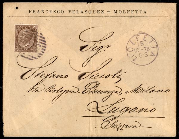 Busta da Molfetta 5.10.78 per Lugano recante 30 cent (L19) bene dentellato - ex coll. Provera