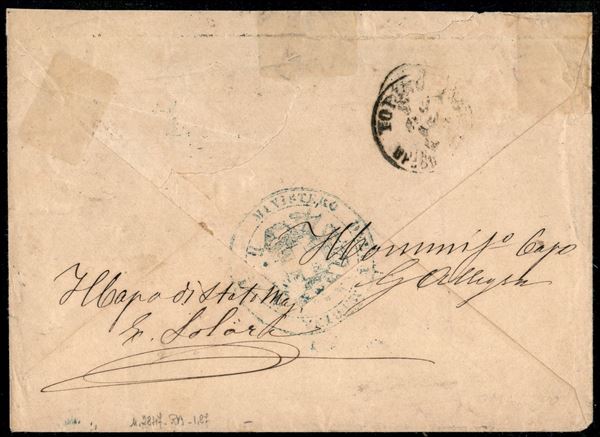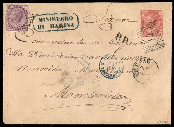 Busta per Montevideo (Uruguay) da Firenze 7 lug ....affrancata con 40 cent rosa carminio + 60 cent lilla (20 + 21) transitata via di Francia - splendida