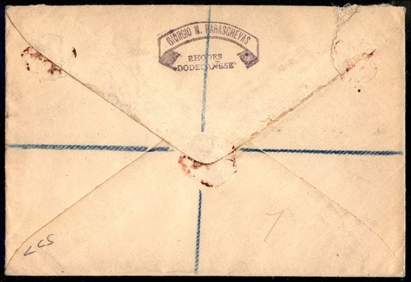 Busta raccomandata con affrancatura multipla composta da 1 p + 2 p + 2 1/2 p + due 3 p (6/9) da Rodi 13.1.47 per Parigi