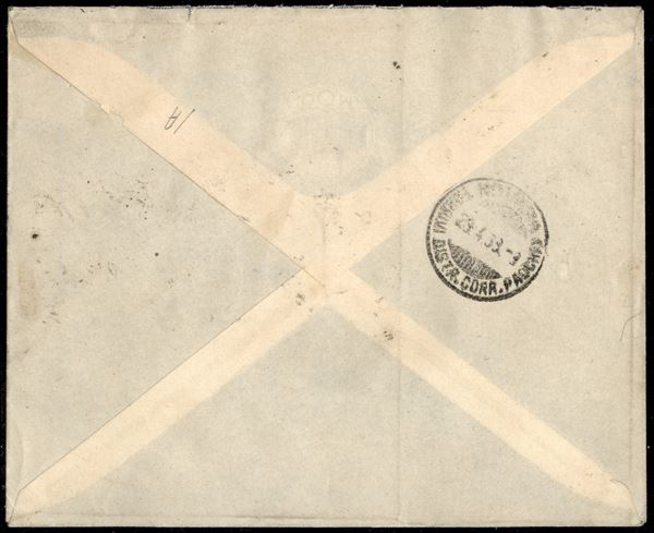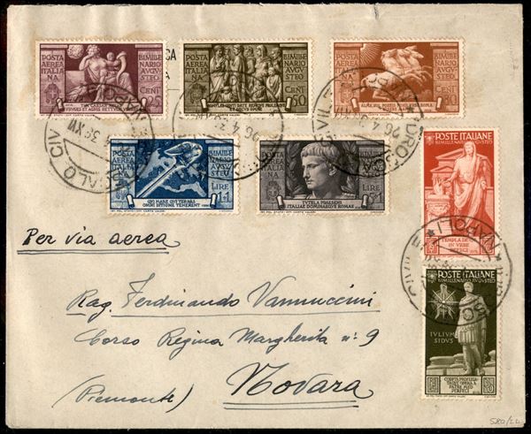 Busta viaggiata da Napoli 26.4.39 recante la serie aerea Augusto pił due valori di posta ordinaria (Aerea 106/10 + 418 + 420)