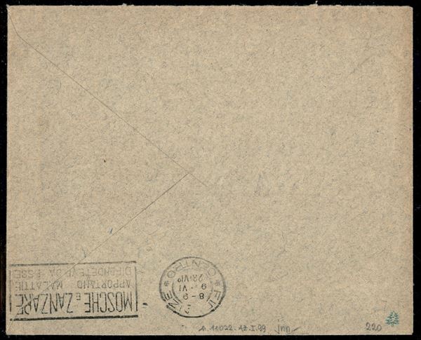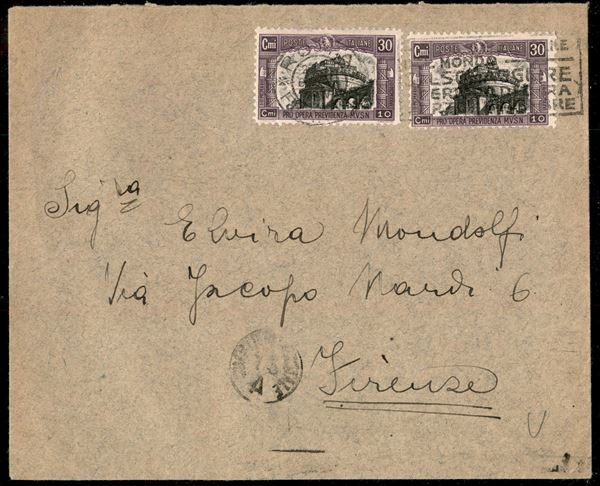 Busta viaggiata da Roma 8.6.28 recante due esemplari del 30 cent Milizia (220) - ex coll. Provera