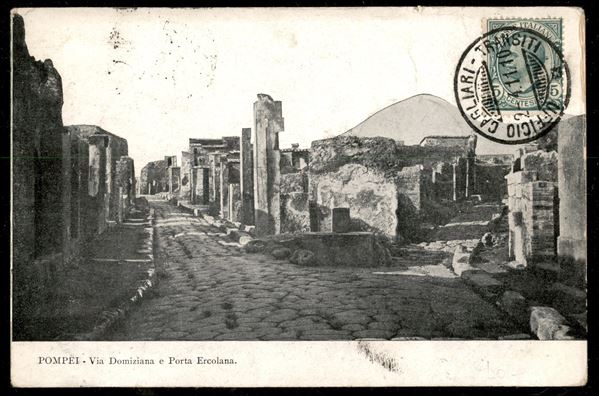 Cartolina per Ismaila via Alessandria d'Egitto affrancata al verso con 5 cent Leoni verde annullato con il non comune bollo guller con lunette rigate Ufficio Cagliari Transiti 2 - 2.4.11 - ex coll. Provera