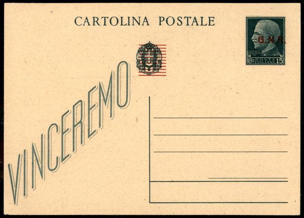 Cartolina postale da 15 cent (C101 - GNR Brescia) con punti tondi dopo le lettere e punto grosso dopo R - nuova - non catalogata