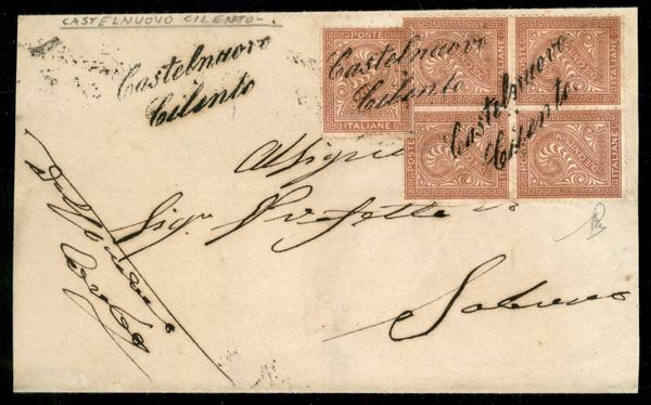 Castelnuovo Cilento (SA) corsivo unico annullatore - piego affrancato (15 + 15 quartina) per Salerno del 15.6.77