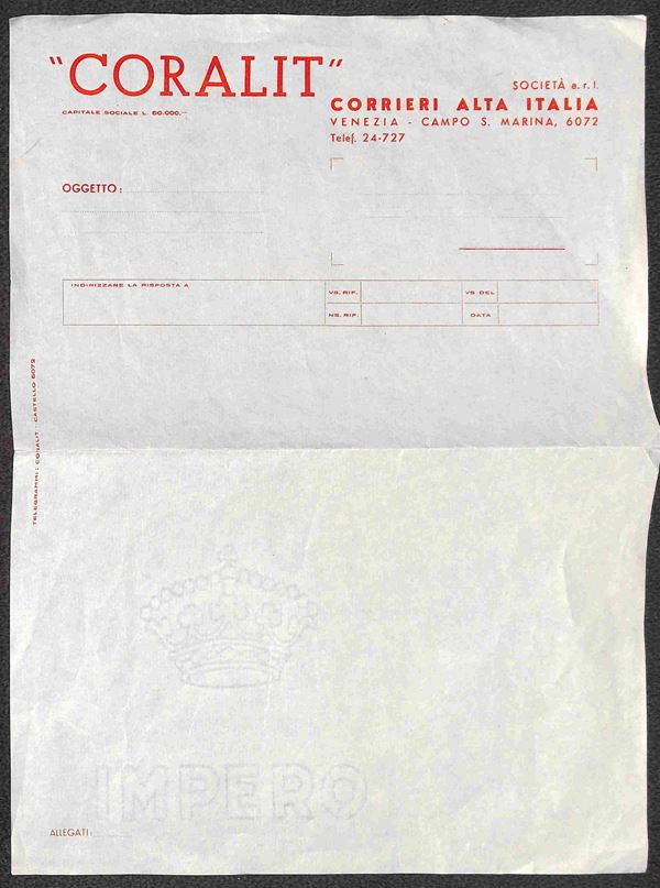 Coralit - 1945 - Foglio intestato nuovo