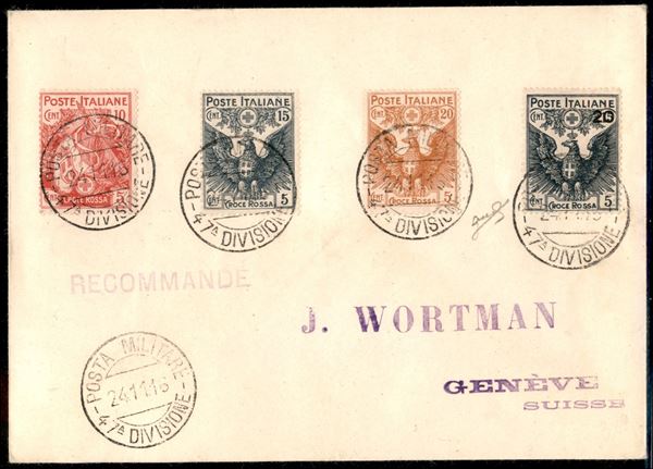 Croce Rossa (102/105) - serie completa su busta da Posta Militare 47 Divisione a Ginevra del 24.11.16 - Biondi