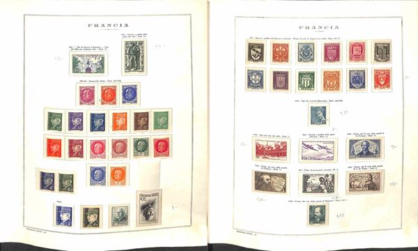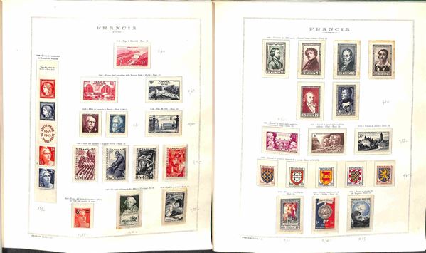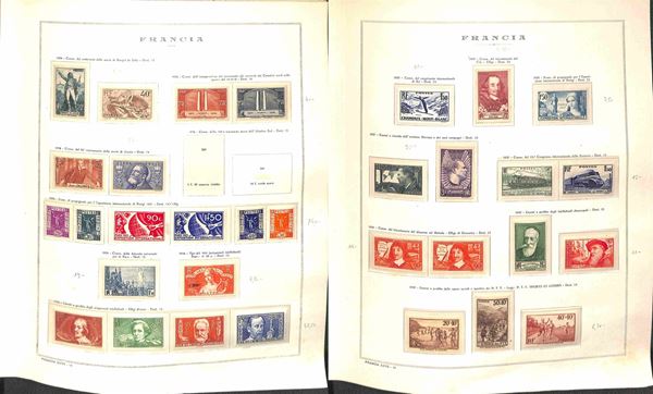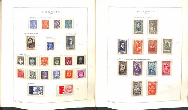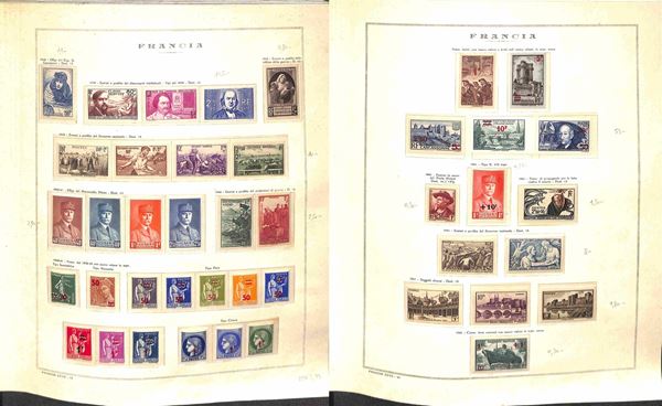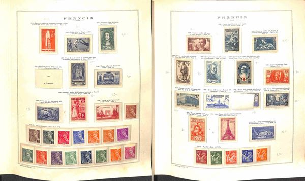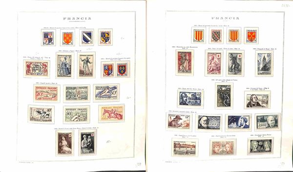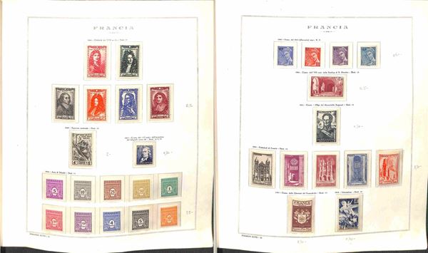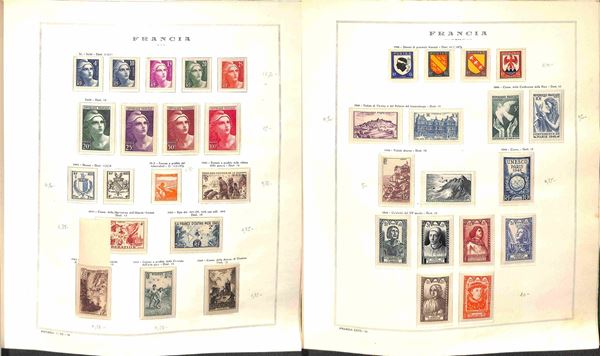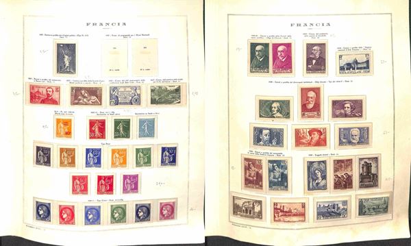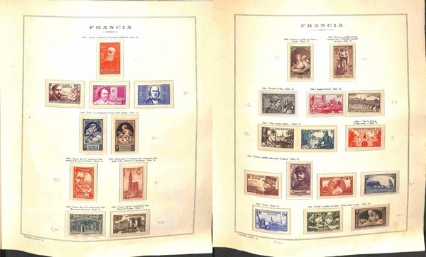 FRANCIA - 1914/1961 - Collezione di valori e serie complete del periodo montata in album e fogli Marini - mancanze fino al '38 praticamente completa il resto - presenze Posta Aerea dal 46 - molte buone presenze - gomma originale e integra - da esaminare
