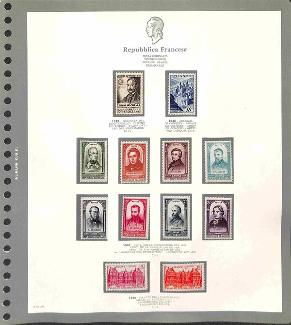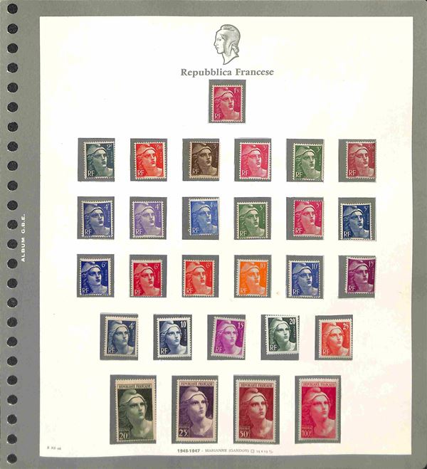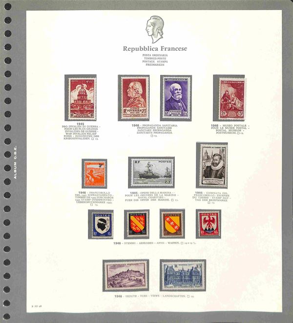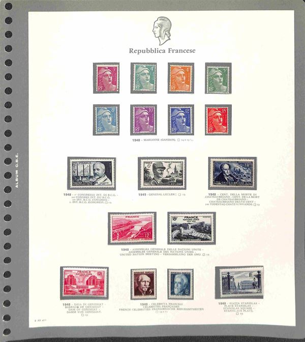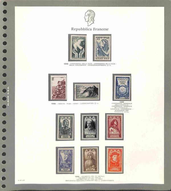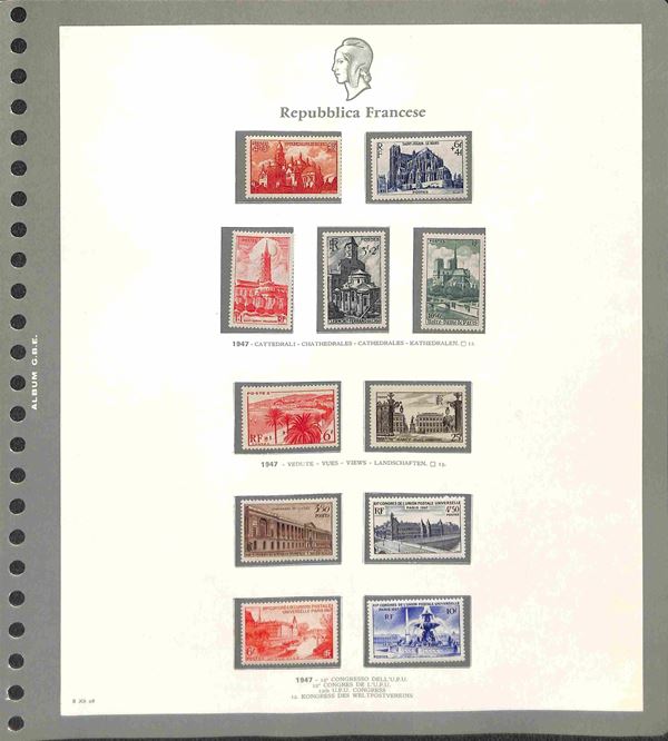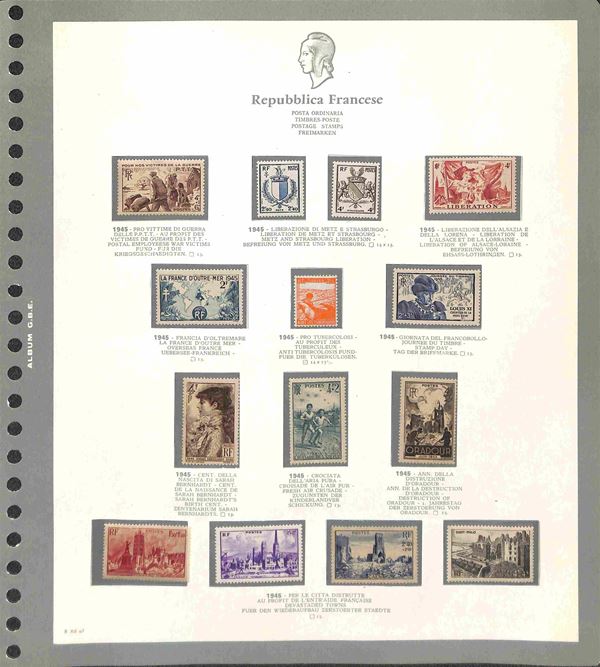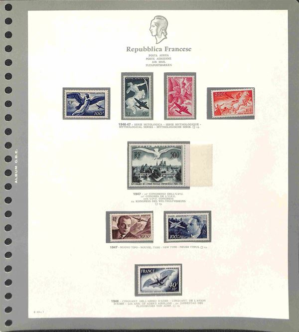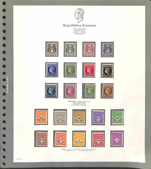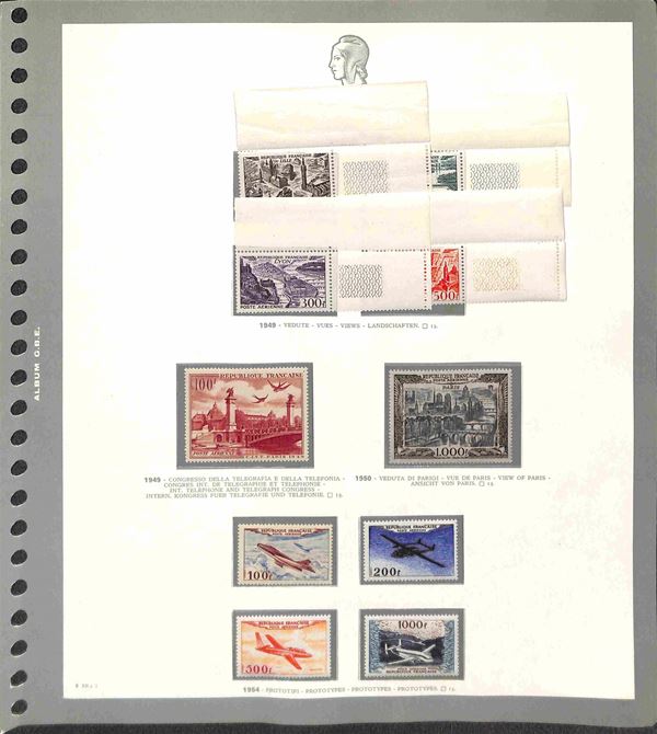FRANCIA - 1945/1959 - Collezione completa di valori posta ordinaria + aerea del periodo montata in album con custodia GBE - ottimo stato di conservazione - tutti gomma integra - valore di catalogo oltre 2.000 €
