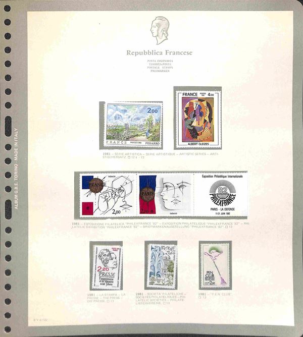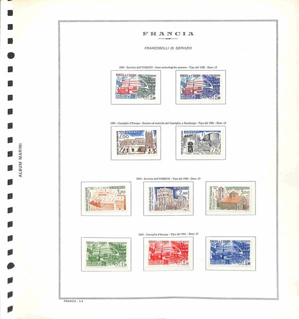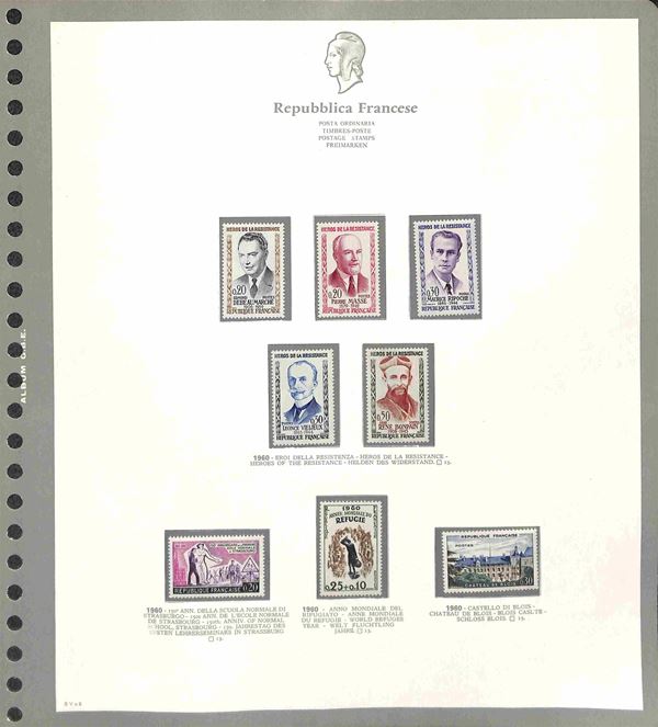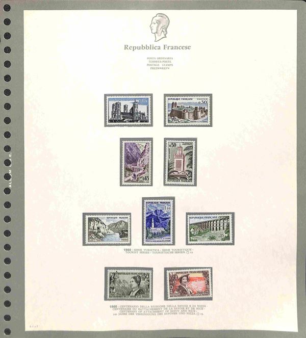 FRANCIA - 1960/1985 - Collezione completa di valori di posta ordinaria + aerea + servizi del periodo (unica mancanza la serie Segnatasse del 1960) montata in fogli e 3 album con custodia GBE - ottimo stato di conservazione - tutti gomma integra - valore di catalogo oltre 1.200 €