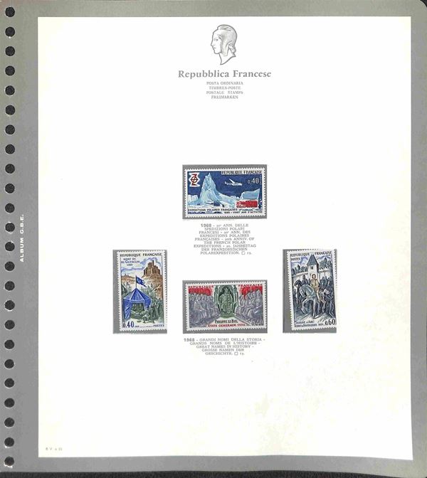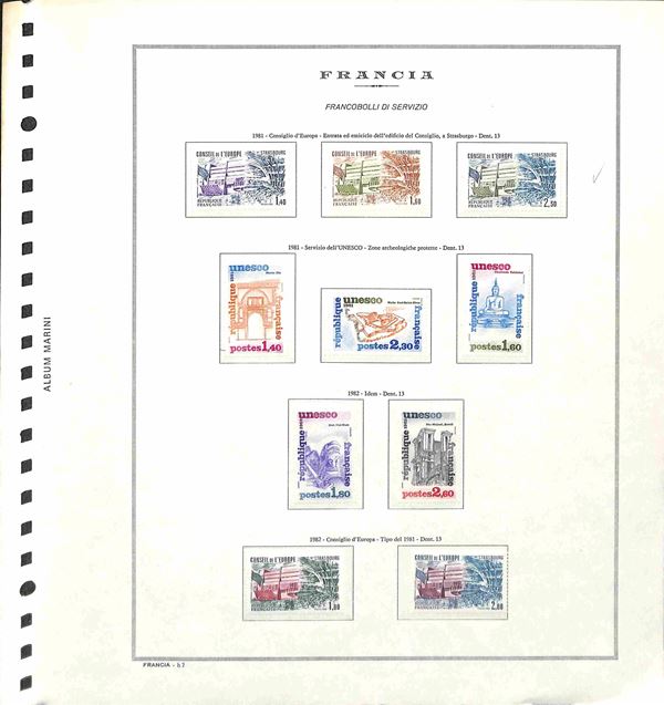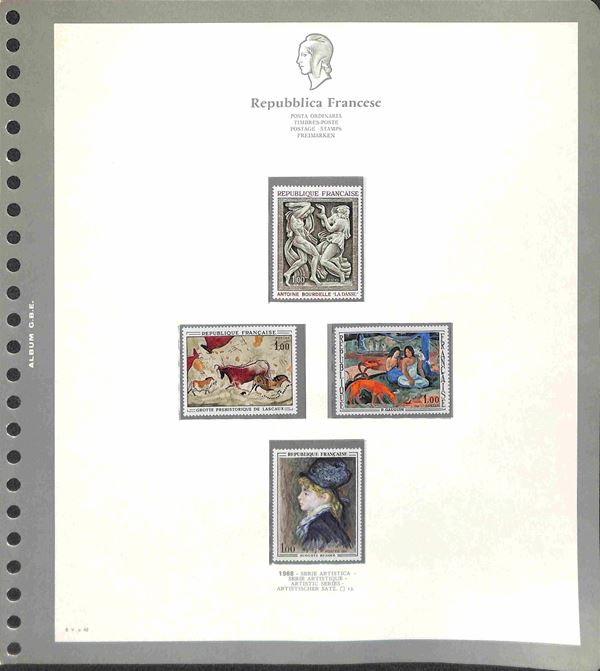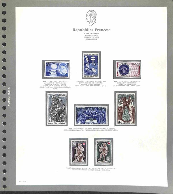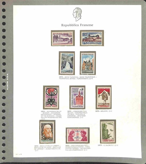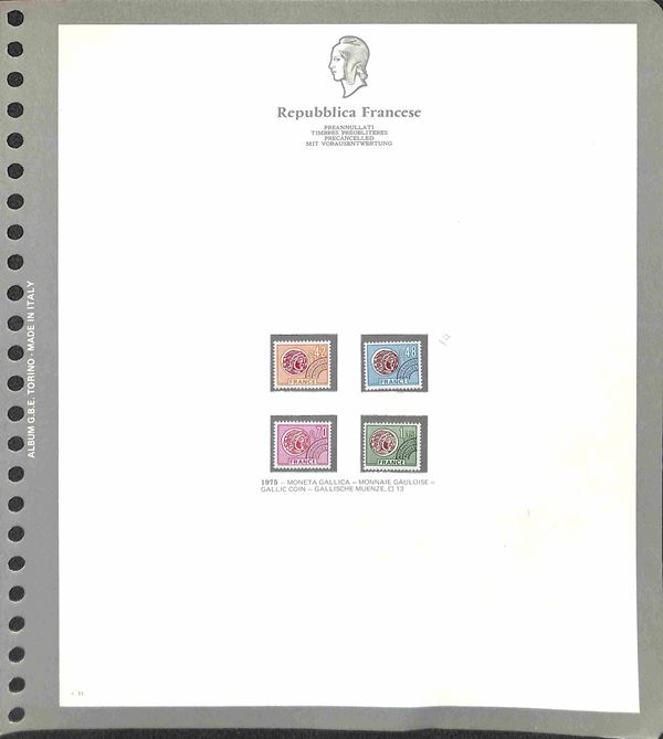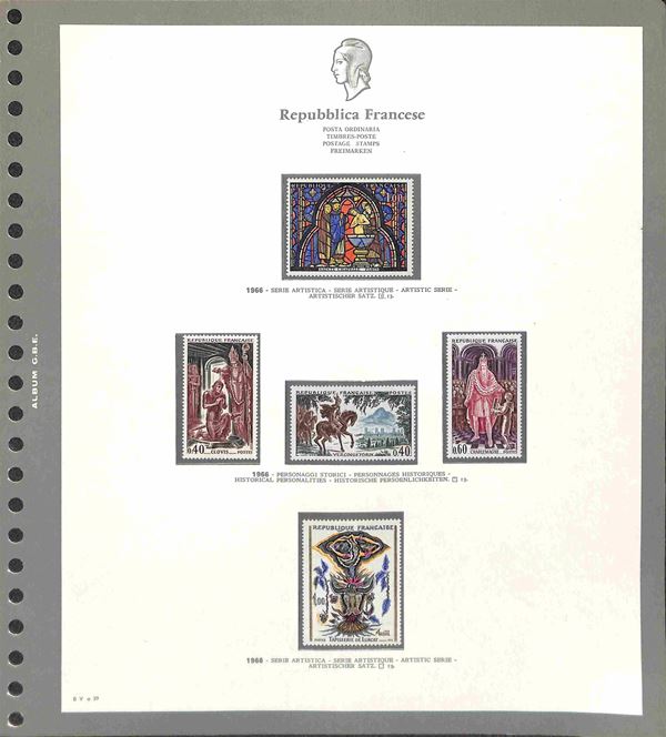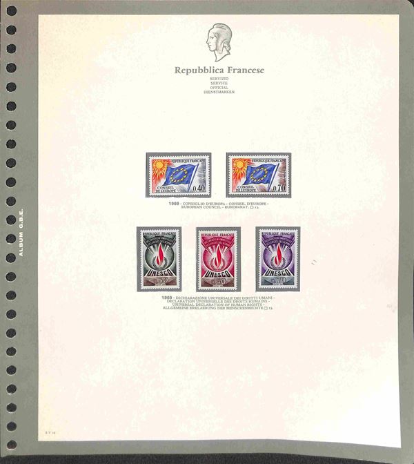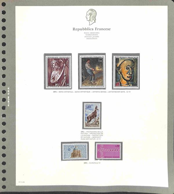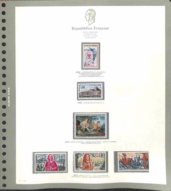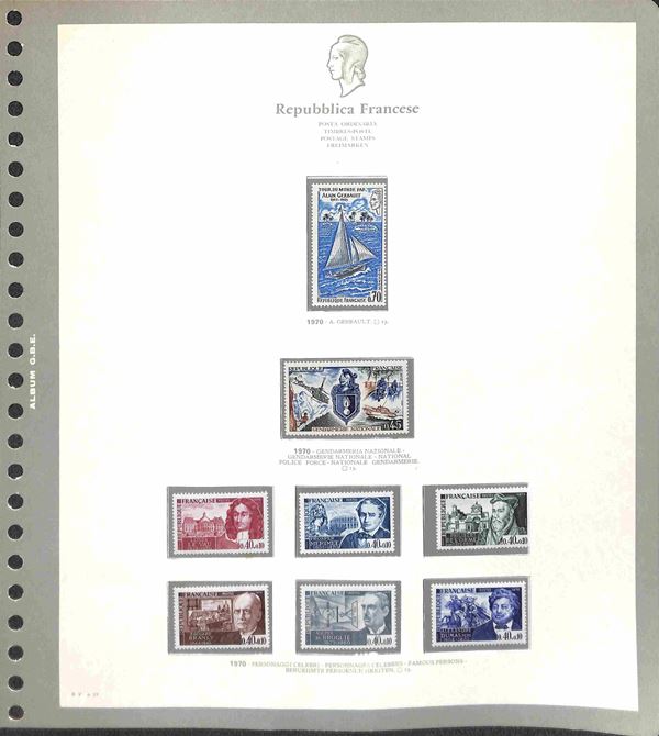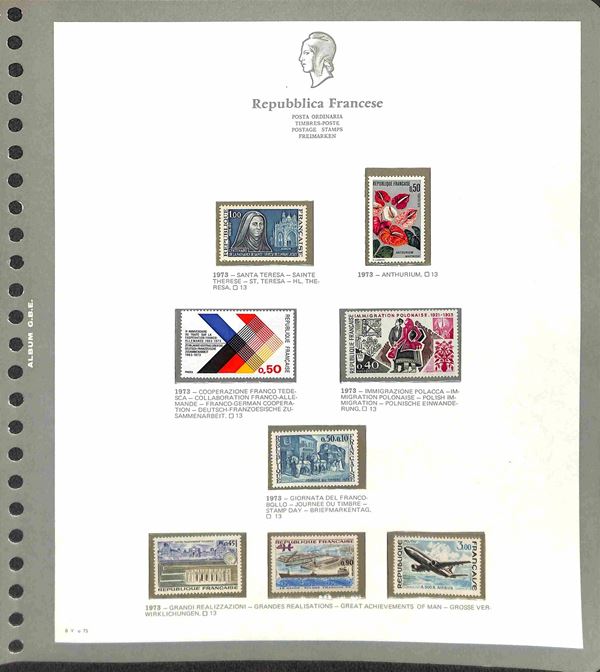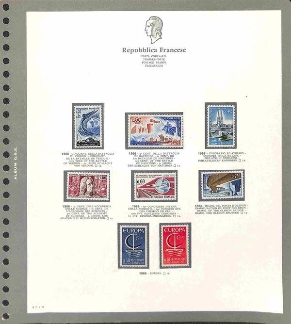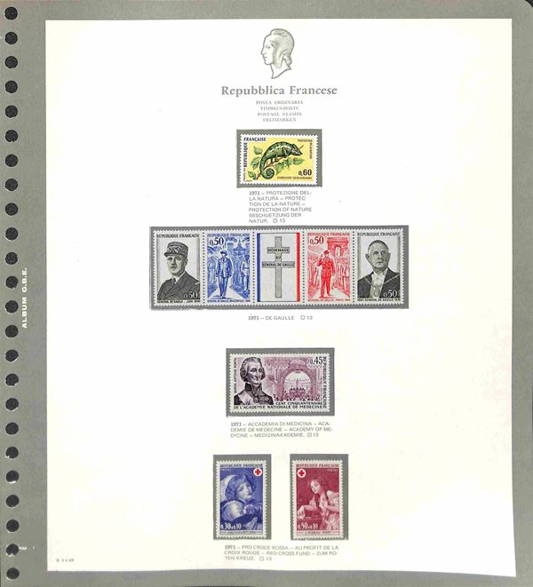 FRANCIA - 1966/1975 - Collezione completa con valori di posta ordinaria + aerea + servizi del periodo montata in fogli e album GBE - tutti gomma integra - valore di catalogo oltre 300 €