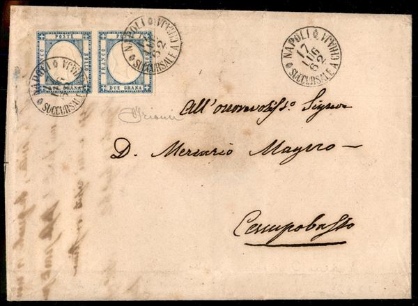 Fresca lettera da Napoli Chiaia 17.7.62 affrancata con coppia del 2 grana (20) con ottimi margini - ex coll. Provera