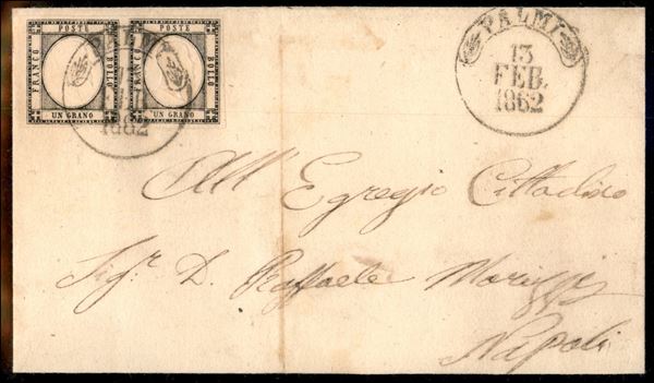 Fresca lettera da Palmi 13.2.62 recante coppia molto bene marginata del 1 grano (19) - ex coll. Provera -