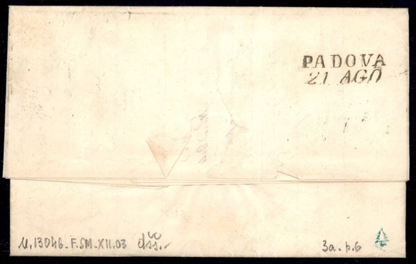 Fresca lettera da Rovigo 20.8 (1850) SD (P.ti 6) affrancata con 15 cent prima tiratura (3a) - buoni margini - ex coll. Provera