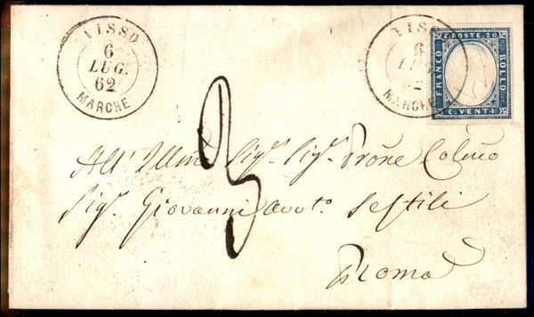 Fresca lettera da Visso 6.7.62 (P.ti 9) recante 20 cent (15Da) con buoni margini - ex coll. Provera