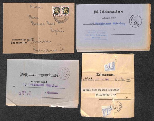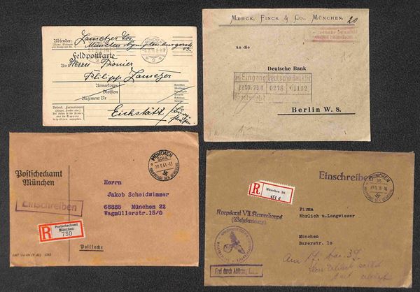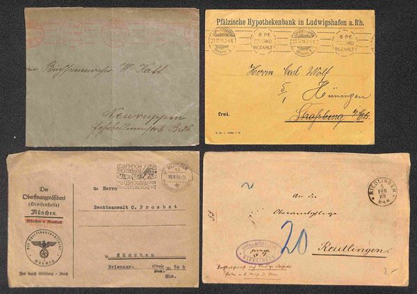 GERMANIA - 1889/1945 -Miscellanea - insieme di 27 oggetti postali (Franchigie Militari e Annulli Meccanici) e documenti del periodo - da esaminare