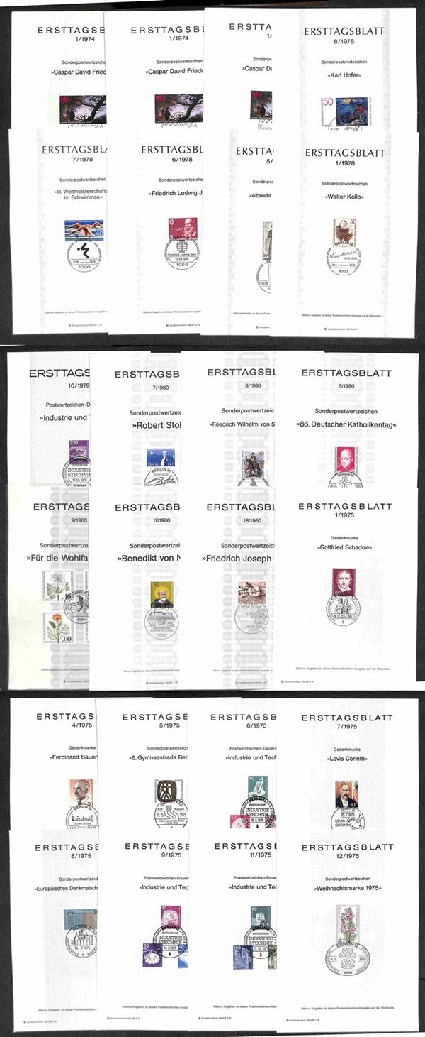 GERMANIA - 1974 - Insieme di 65 bollettini Ersttagsblatt emessi nell'anno