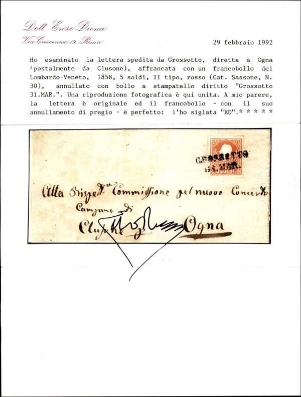 Grossotto (P.ti 10) - 5 soldi (30) su letterina per Ogna del 31.3.1859