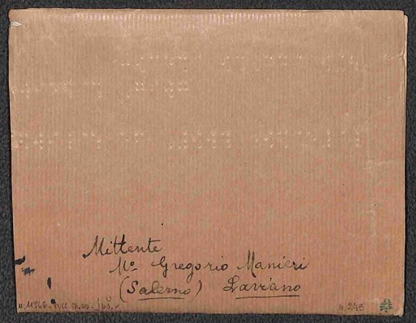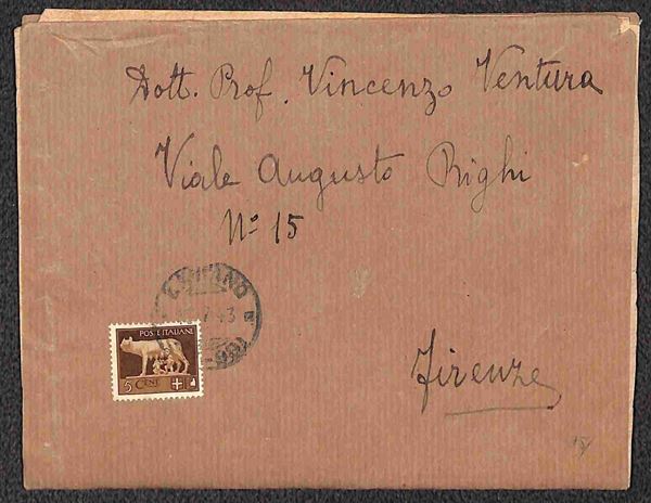 Imperiale 5 cent bruno isolato su carte braille da Laviano 23.7.43 per Firenze - ex coll. Provera